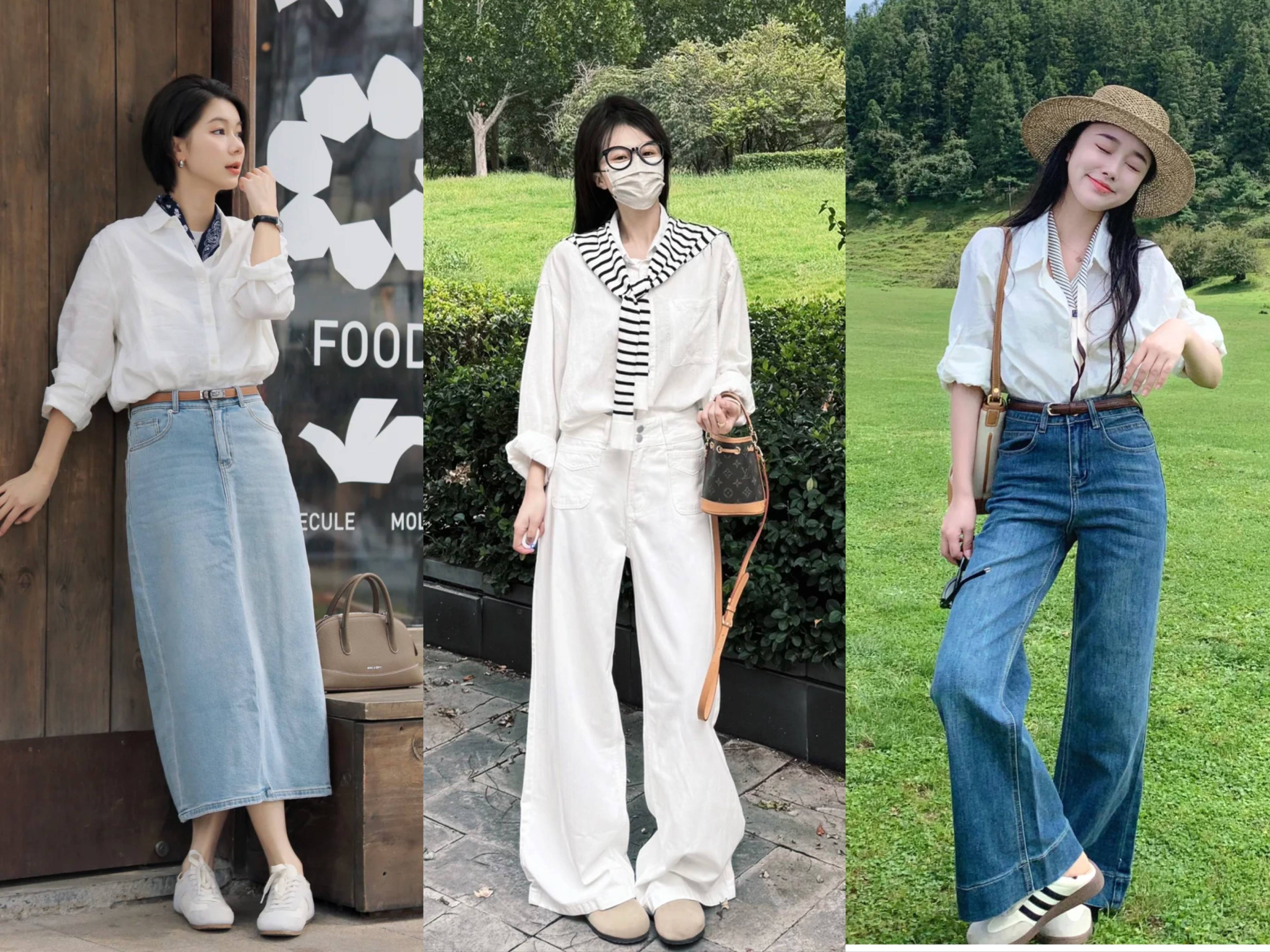 当然,除了叠穿,白衬衫还可以当做外套穿,选择版型稍微宽松一点的白衬衫,内搭同色系T恤或者小吊带,下半身搭配牛仔阔腿裤,打造简约又清新的春季小清新穿搭,在搭配连衣裙的时候,比如黑色吊带连衣裙,可以套一件白色衬衫,简约又高级优雅。