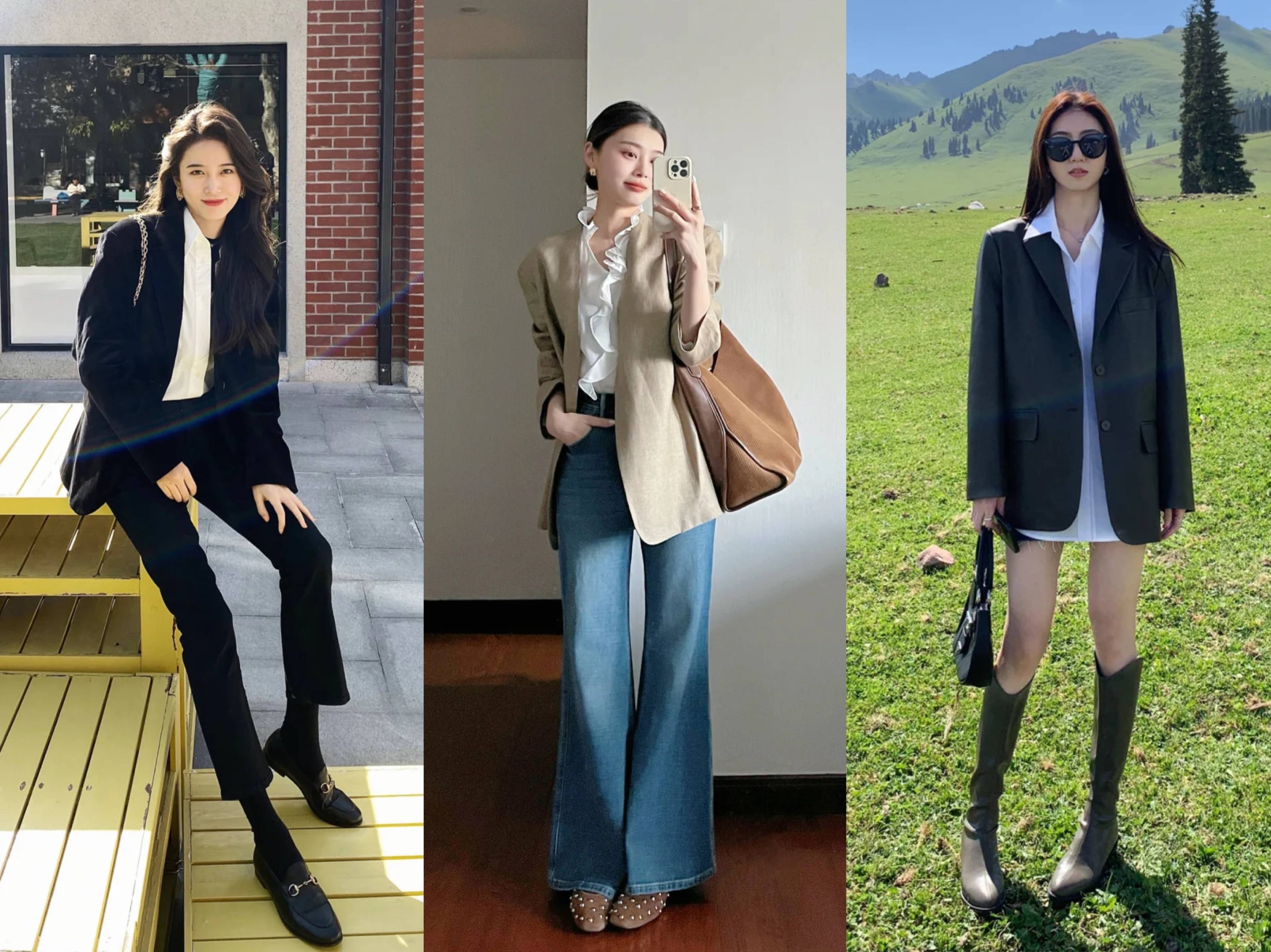 小西装内搭白衬衫还可以搭配下衣失踪穿搭,随着气温逐渐升高,尤其是两广等沿海地区,很多人也开始选择露腿穿搭了,选择廓形较为宽松的小西装内搭白衬衫,下半身选择短款或者短裙+过膝长靴,超级显瘦又显腿长哦!