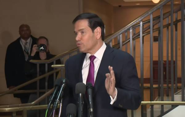 当地时间3月2日,鲁比奥在国会大厦回答记者提问。视频截图