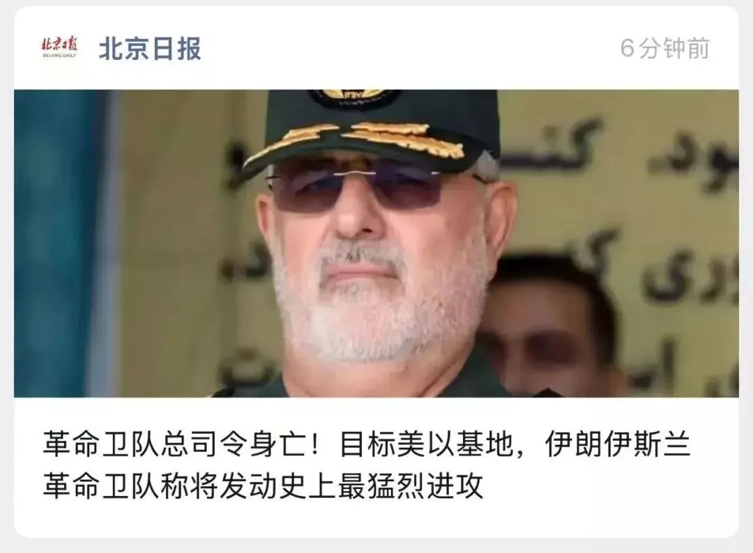 哈梅内伊已经阵亡了,连带着伊朗革命卫队的司令也阵亡了。