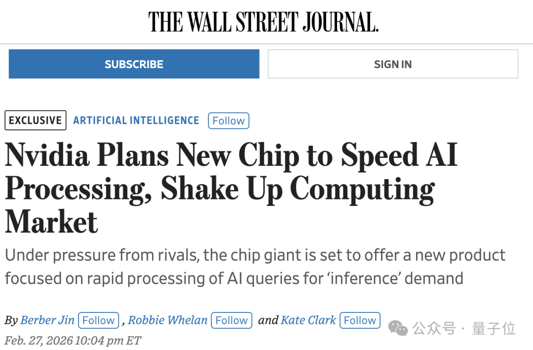世界第一也着急!据悉,在即将开幕的 3 月 16-19 日圣何塞 GTC 大会上,黄仁勋将发布一套全新的 AI 推理系统,核心是一颗专为推理优化的新芯片,而芯片的首位大客户已敲定 —— 刚刚完成 1100 亿美元巨额融资的 OpenAI。