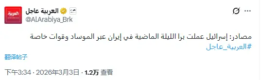据3月3日报道,以色列昨晚在伊朗境内通过摩萨德和特种部队进行了地面行动,以色列尚未确认或否认。