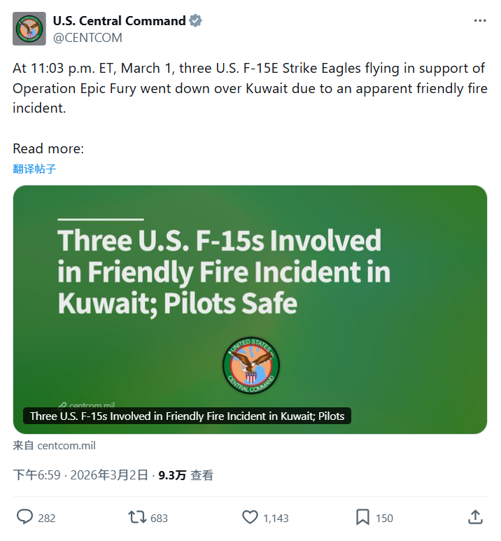 其他信息源,还有包括卡塔尔乌代德基地 AN/FPS-132 预警雷达被摧毁,科威特边境 3 架美军 F-15E 战斗机被击落,霍尔木兹海峡 3 艘美英油轮被击中起火,美军 4.8 万吨作战支援舰、弹药船遭反舰打击受损。