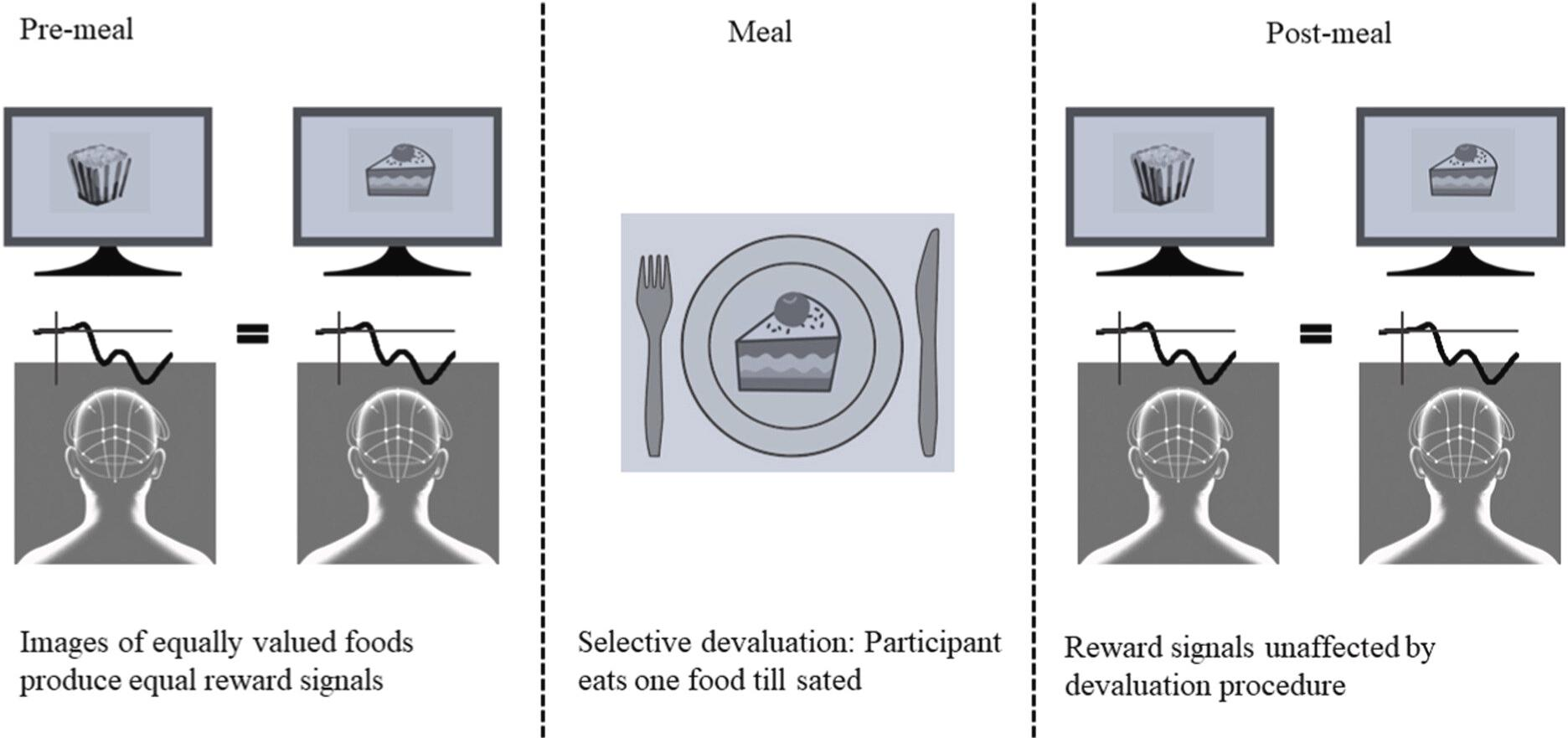 但脑电图数据讲了一个截然不同的故事。即便人已经完全饱腹,大脑对食物图像的神经反应并没有减弱,奖励相关脑区的电活动依然活跃,就好像那块巧克力对大脑来说还是刚才一样诱人。