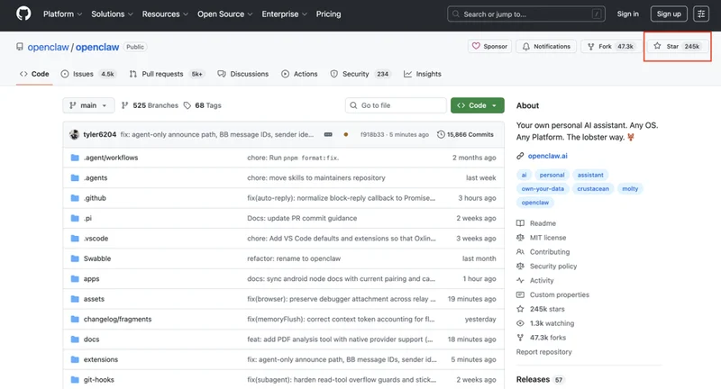 截至今日,收获24万stars,Github地址:https://github.com/openclaw/openclaw