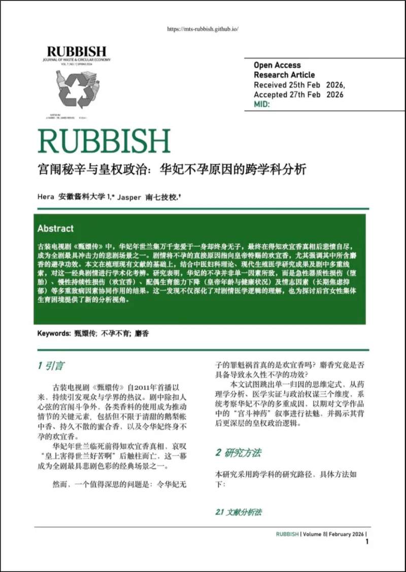 《Rubbish》上,有人研究了《甄嬛传》里华妃不孕的原因,他表示这事可大了,大到揭露了封建制度下女性命运的无奈。