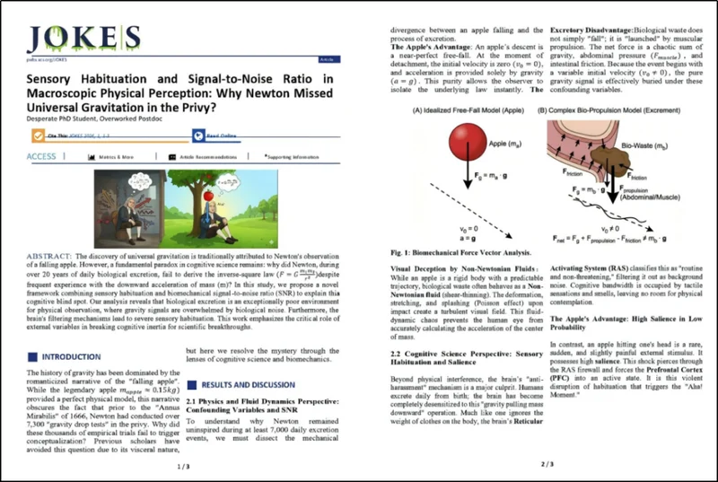 期刊《JOKES》震撼首发了一篇论文,里面图文并茂分析了为什么这位伟大的科学家一生排泄7000次,还没联想到万有引力。