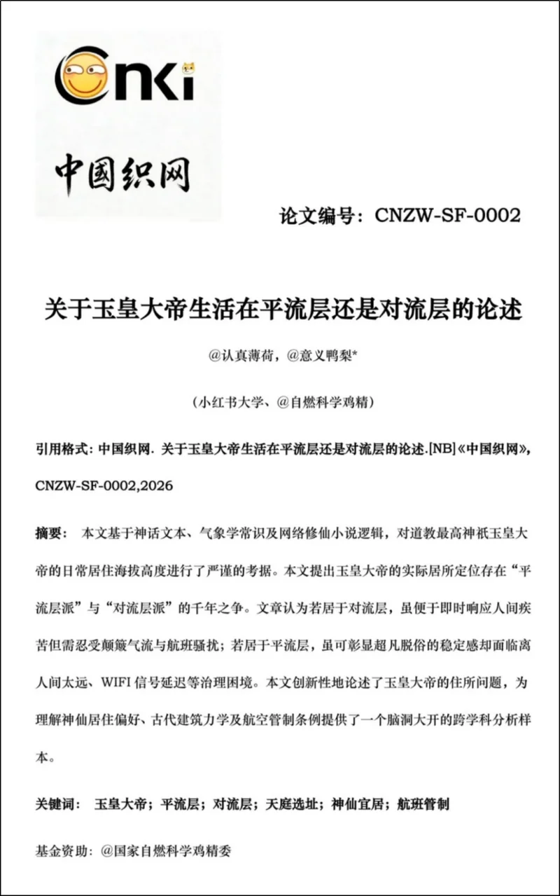 《中国织网》的一篇文章里,作者很自信地表示,自己开创性地论述了玉皇大帝的住所问题。