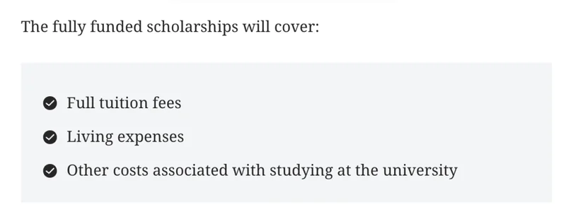 全额奖学金将涵盖: