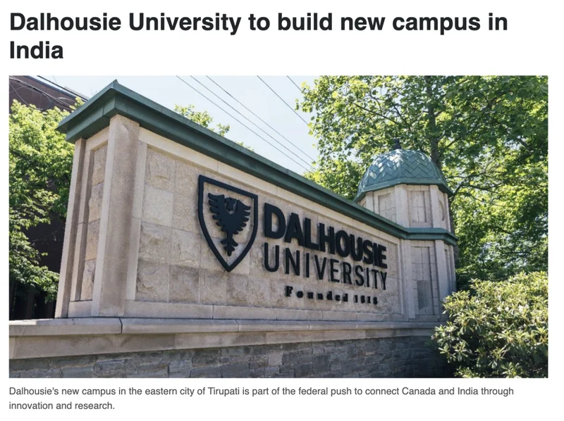 Dalhousie University 将与印度两所顶尖科研机构合作,在印度东部城市Tirupati建设一座全新的全球创新校园。