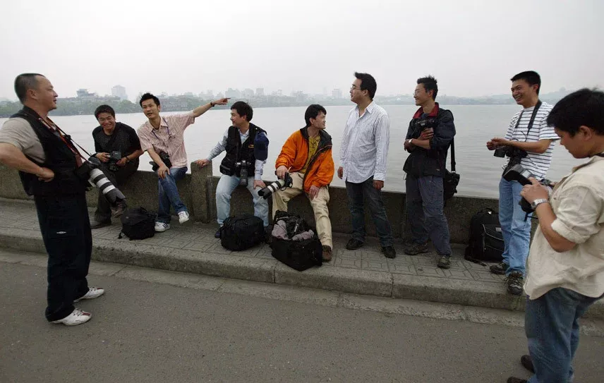 近日,潮新闻收到了一份特别的投稿:一张20年前的照片里,十几个背着相机的年轻人,挤在断桥边,仰头等待一场暴雨。
