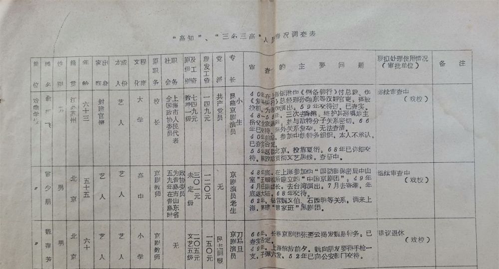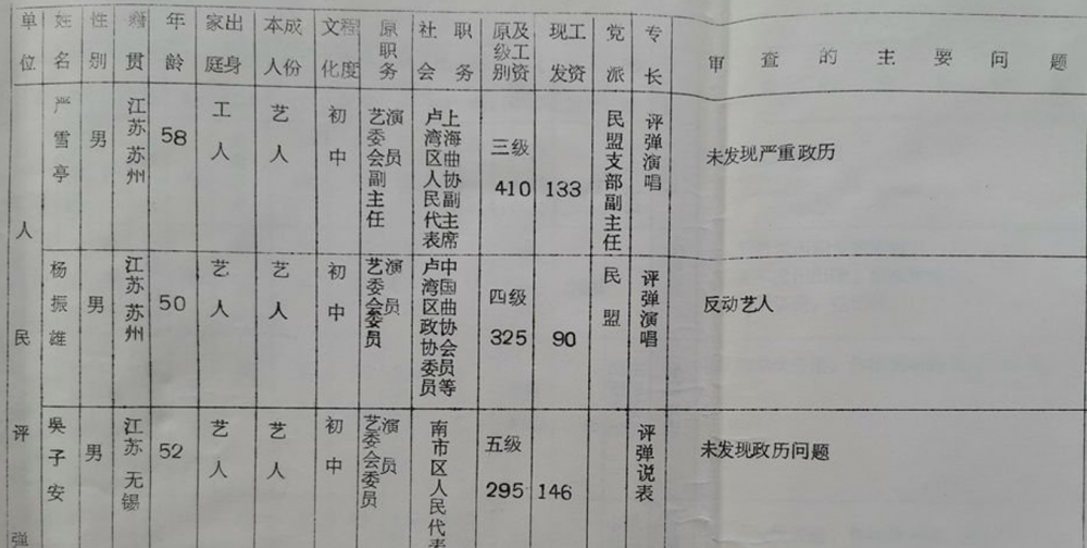 这些名人除了有高稿酬、高奖金,他们的工资也远高于标准的级别工资。下面是上海部分戏剧界名人的工资情况。