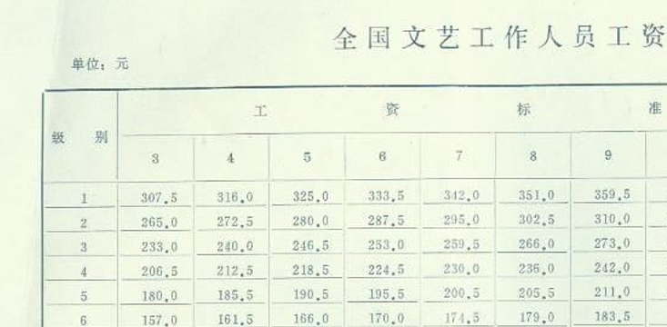 文艺界的工资标准如下: