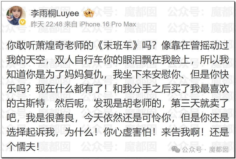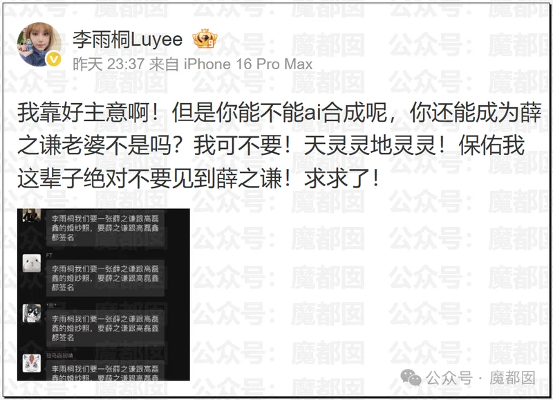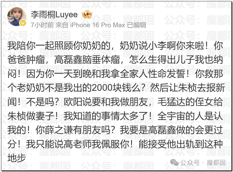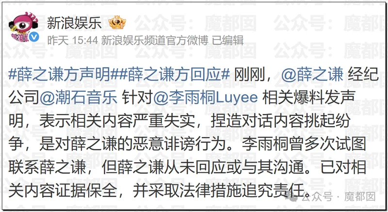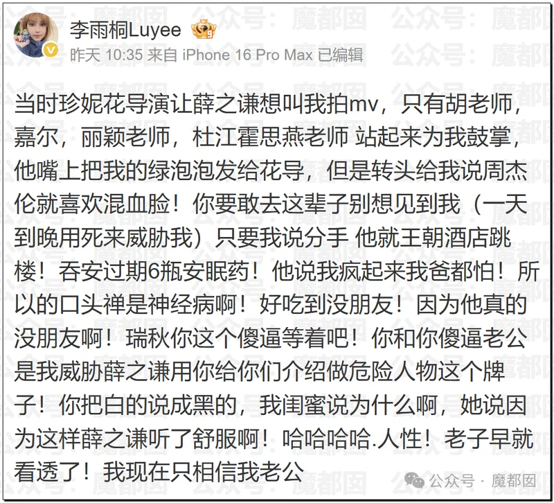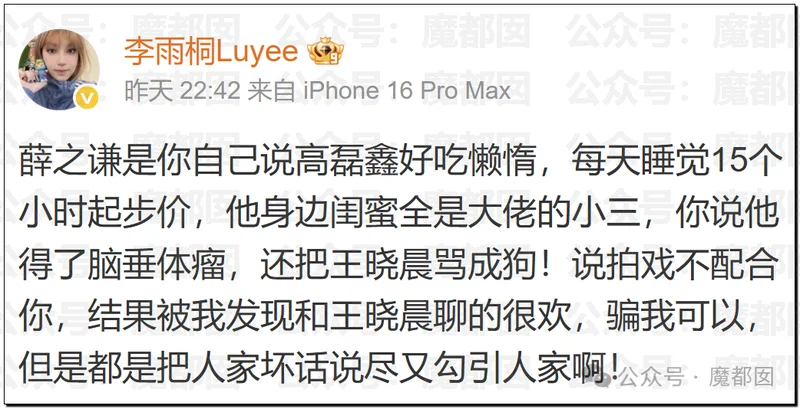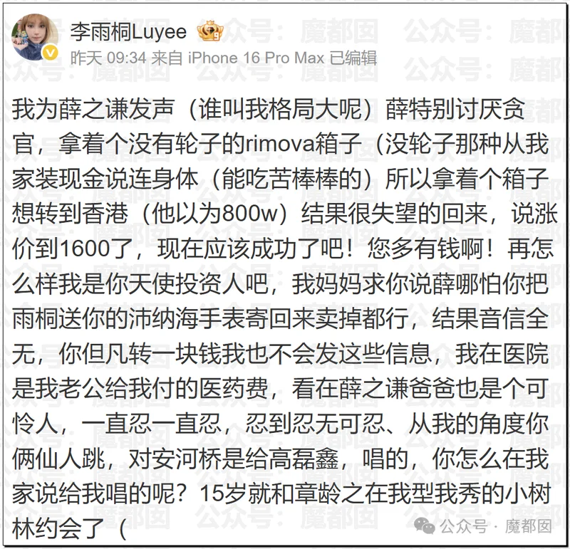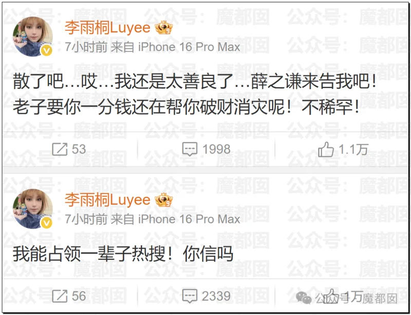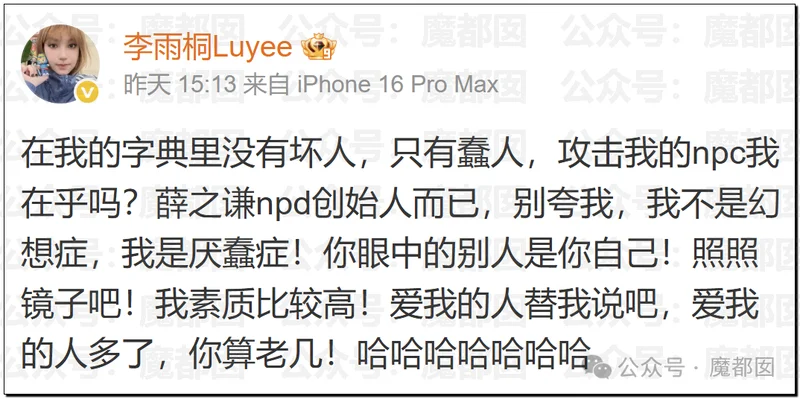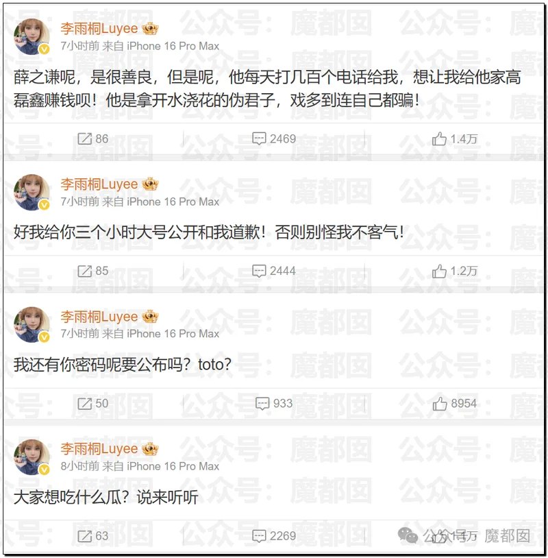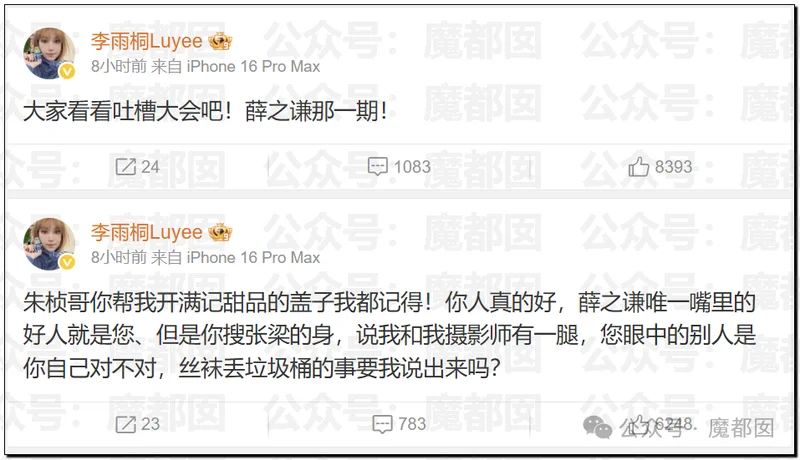 昨天李雨桐是不间断的在喷薛之谦,一直到现在也在喷,连著名主持人朱桢都喷了: