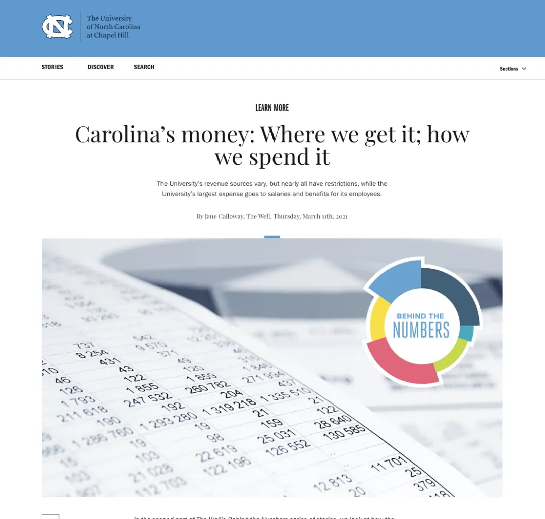 根据UNC教堂山分校官方刊物《The Well》在2021年发布的一份财务报告,我们可以窥见这所学校的资金流向: