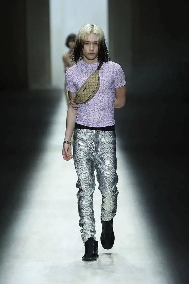 “Gucci是好玩的。”Demna如此定义这场秀。于是,Z世代面孔被带上T台:地下说唱歌手、橄榄球运动员、YouTube博主、跨性别模特----这些身份并不服务于象征意义,而是共同拼贴出一幅高度当下的文化图景。Gucci在这里不再试图“引导潮流”,而是选择直接站入潮流之中。
