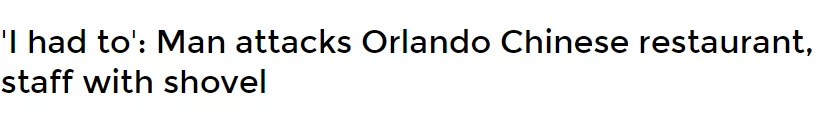 他闯中餐馆挥铁锹 大喊杀光所有人 称中餐馆将放病毒