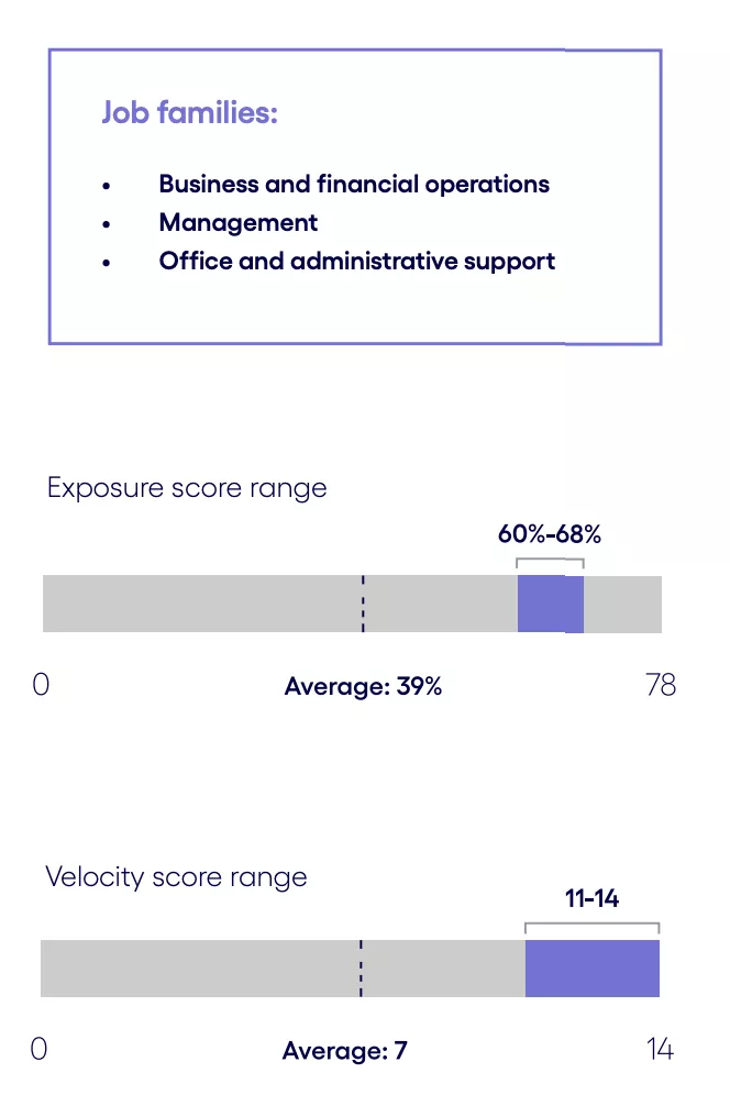 第一,管理层不再安全。曾几何时,CEO和高管们认为协调、预算分配和决策是人类独有的。但在2026年,Agent能够自主安排日程、根据支出模式重新分配预算、追踪项目进度。Cognizant的数据显示,CEO的AI暴露度从25%飙升至超过60%。
