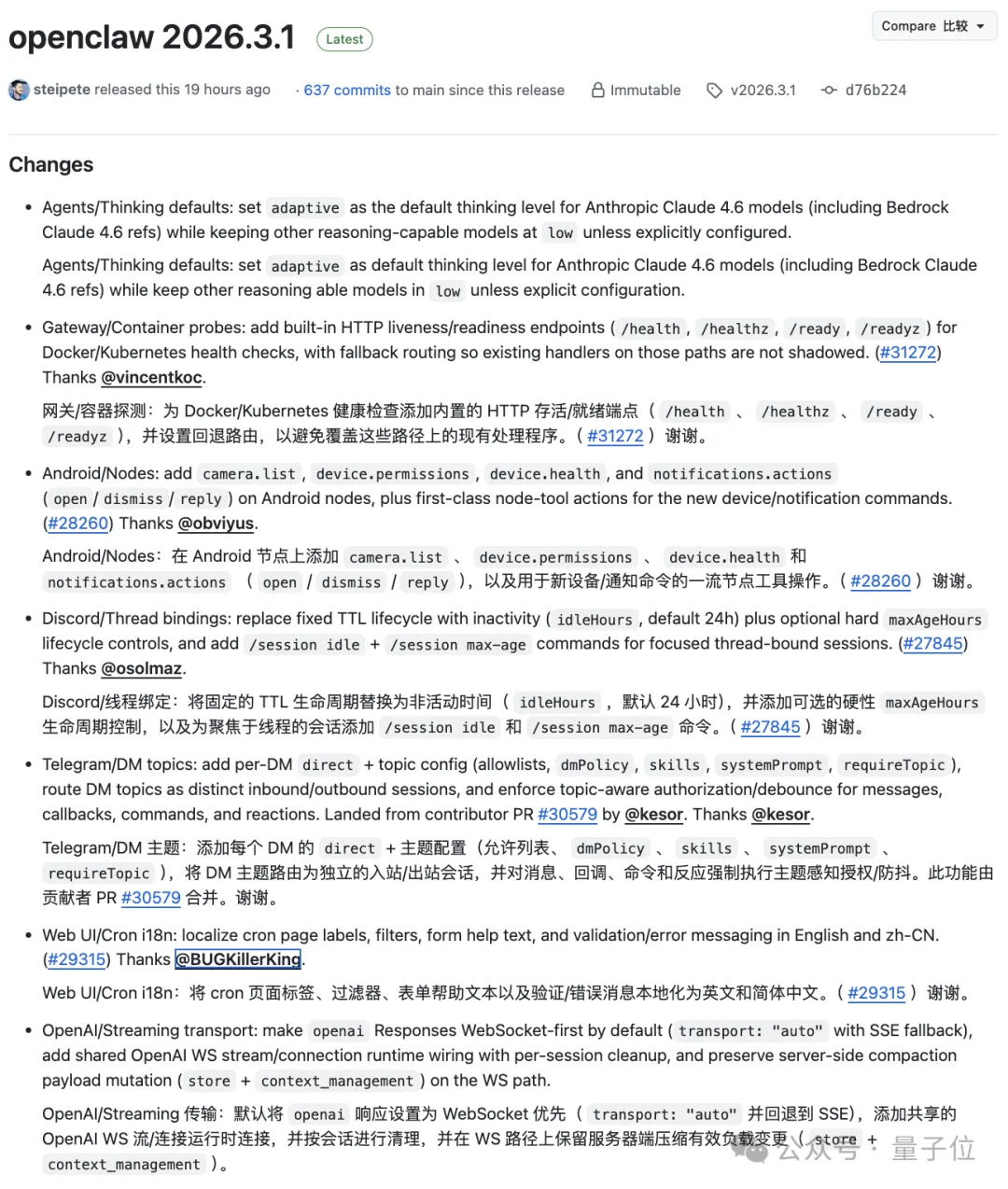 好消息,这次很多PR都来自中文贡献者,新版龙虾非常适合中国宝宝的胃口。