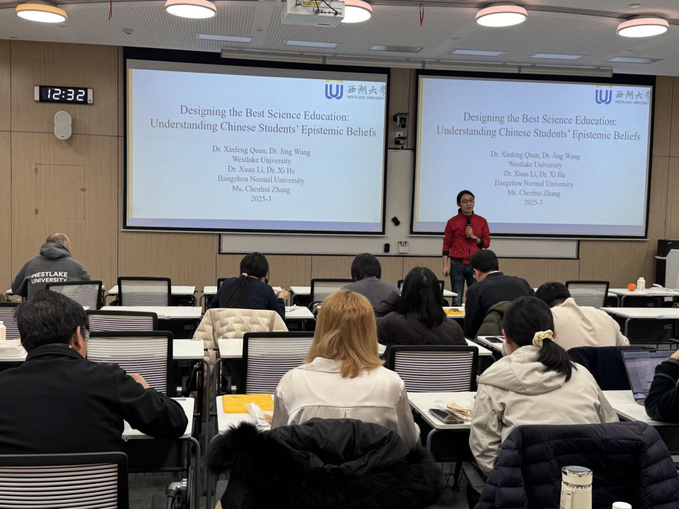 2025年3月,权新峰在西湖大学做教学相关研究的校内报告。