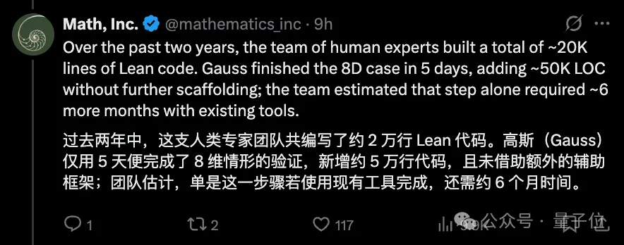 “硅基高斯”背后团队强调,Gauss是“独立推演了全部证明过程”。