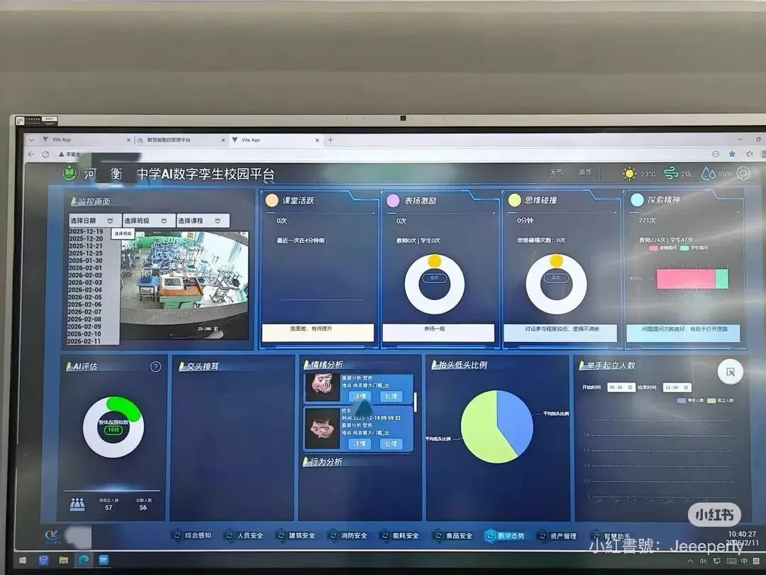 课堂是否活跃,思维是否碰撞,抬头低头比例,举手起立人数,全都尽收摄像头眼底。