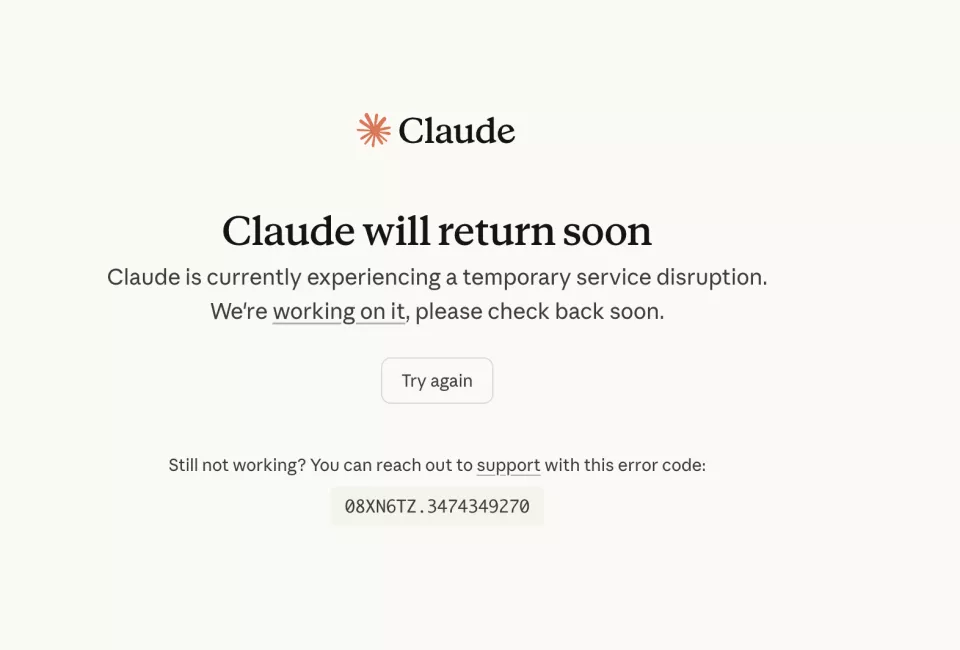 对于全球数以百万计已经将Claude深度嵌入日常工作流的开发者、内容创作者和企业用户而言,这场宕机的体感更接近一次“大面积停电”。