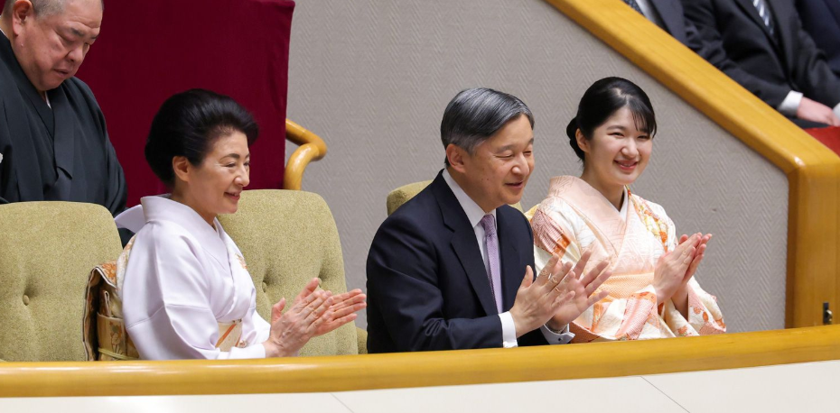 这是爱子时隔六年再次和父母一同观看相扑比赛。