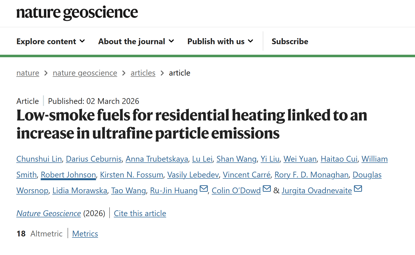 在全球大气污染治理中,降低PM2.5等颗粒物质量浓度是核心目标之一。为解决居民固体燃料燃烧带来的烟霾问题,爱尔兰、中国等多国相继推广低烟/无烟燃料替代传统烟煤、泥炭等。然而,这类低烟燃料在实际应用中的环境健康效应尚未被全面揭示,尤其是粒径小于100纳米的超细颗粒物(UFPs),其可深入人体呼吸道、穿越血脑屏障,引发更严重的肺部炎症和长期健康风险,但目前尚未被纳入主流空气质量标准监测体系。