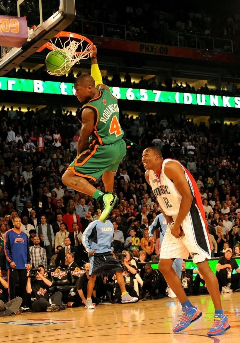 随后在2009年和2010年,罗宾逊又是两次拿下全明星扣篮王,其中在2009年飞跃霍华德的那记扣篮更是成为这项赛事的经典一幕。