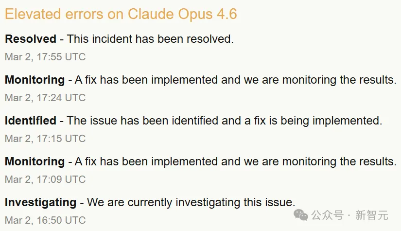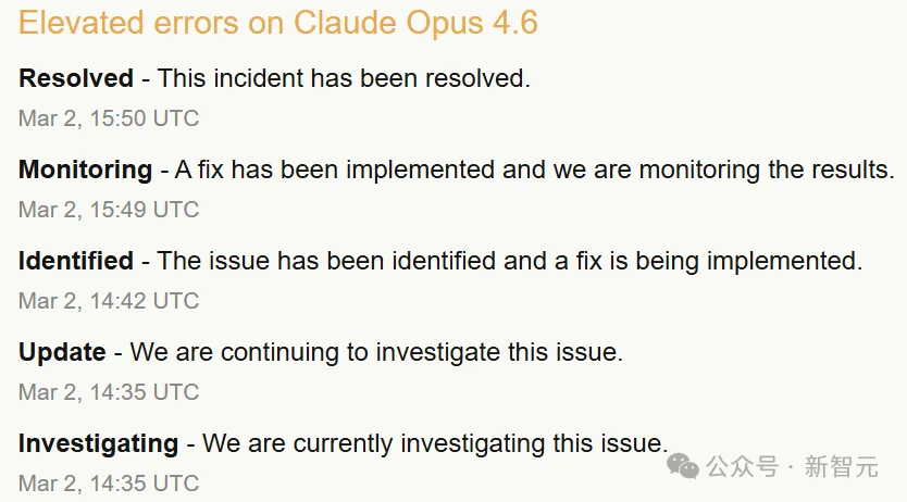 22点35分,核心模型Claude Opus 4.6突发大面积报错,团队被迫再次开启紧急修复。