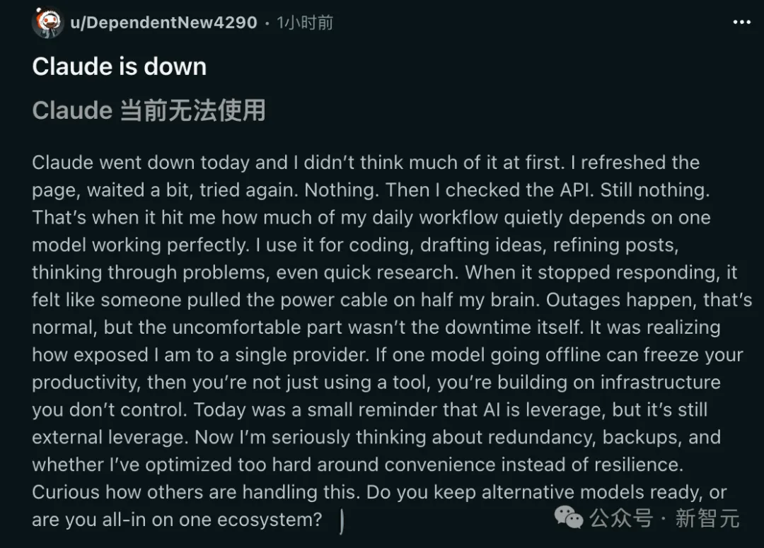 此时此刻,全网一片哀嚎,离了Claude,瞬间退回了原始人的时代。