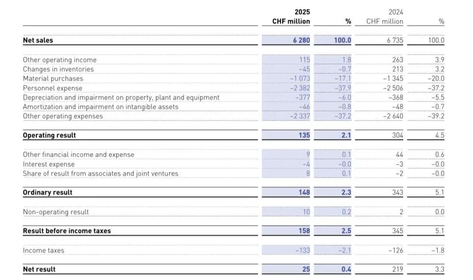 不久前,Swatch集团发布了2025年全年业绩。