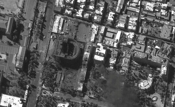 ▲▼伊朗总统府遭轰炸前后卫星照。(图/路透)