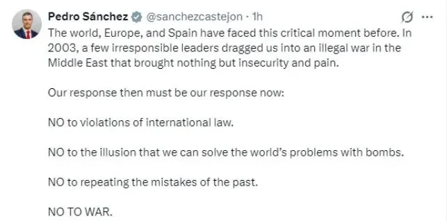 在欧洲主要国家中,由桑切斯领导的西班牙政府,对此次军事行动的反对态度最为明确且强硬。