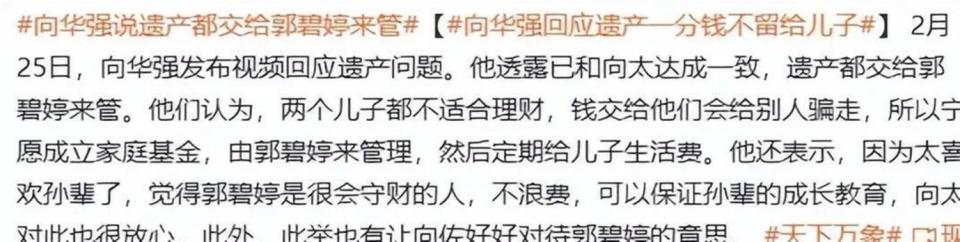 就在前两天,这个78岁的影坛大亨又发视频了,上次说遗产全给郭碧婷,全网还以为开玩笑。结果这次他来真的:不仅钱全部放进家族信托交给儿媳妇管,还把小儿子的微信给拉黑了。
