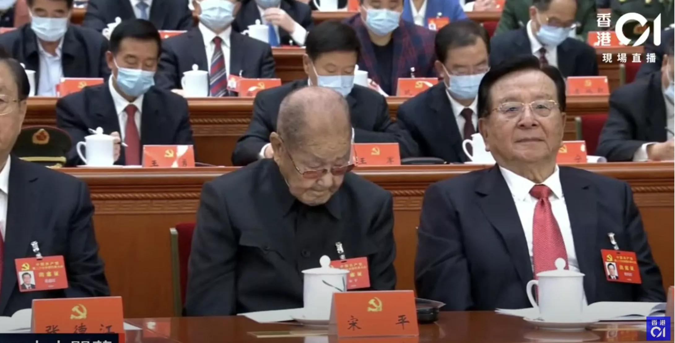 2022年10月16日上午,中共二十大在北京举行开幕式,105岁的元老宋平露面,引来许多人关注。(01截图)