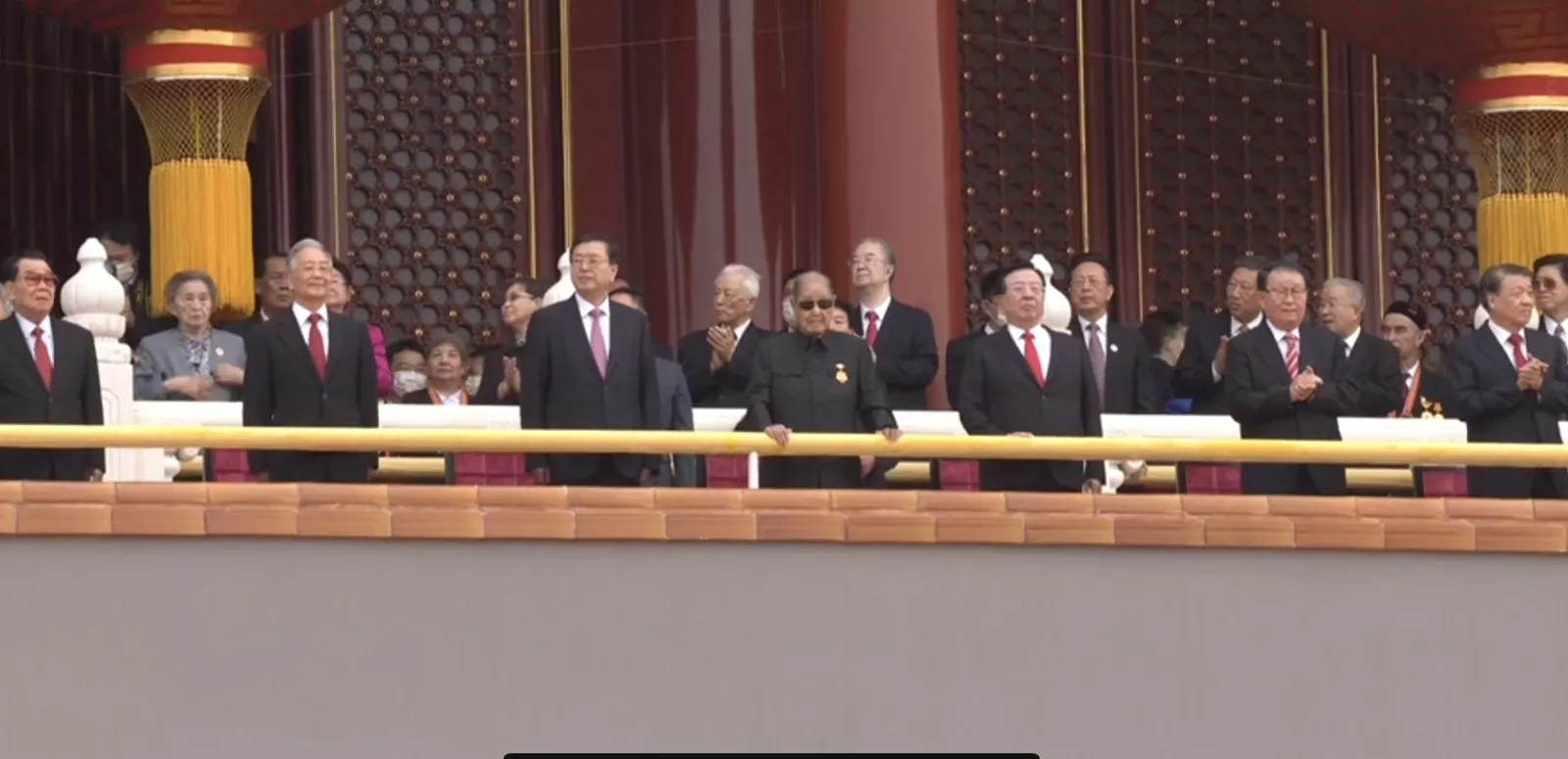 1917年出生的宋平当时已105岁高龄,作为党内最年长的前政治局常委,宋平出现在主席台前排,在他的左右两边分别坐着中共第十七届政治局常委曾庆红和第十八届政治局常委张德江。