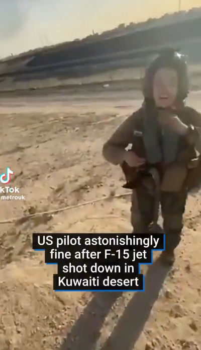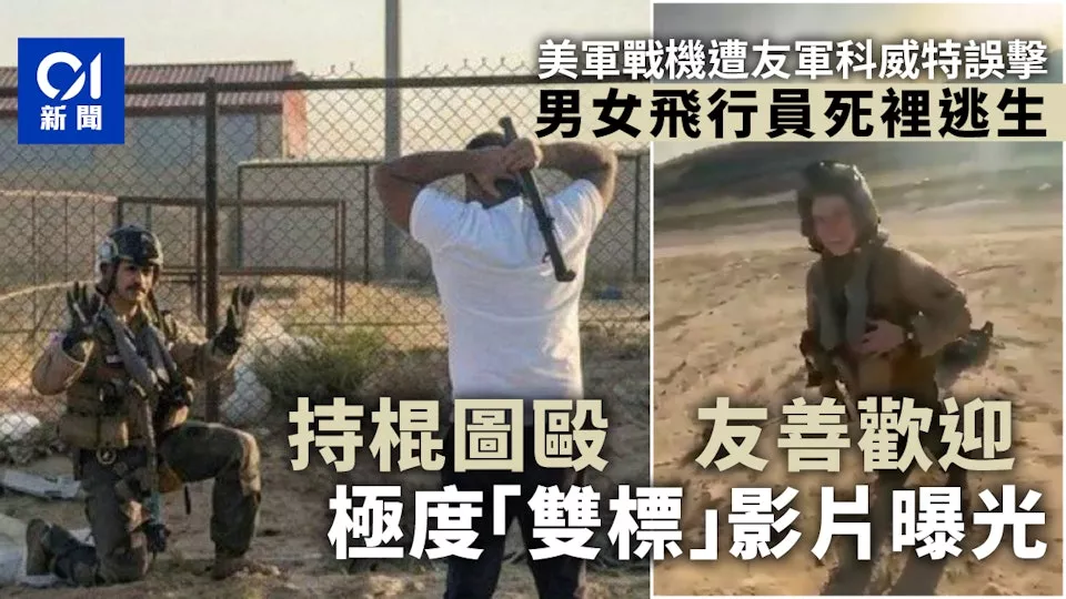 3架美国战斗机3日在科威特上空不慎被友军误击,所幸6名飞行员都在战机坠地前逃生成功,皆无大碍。不过网上疯传两段影片引起网友讨论,一段为男飞行员落地后差点遭当地民众围殴,一段则为女飞行员受到当地民众友善对待,让网友笑说是“大型双标现场”。