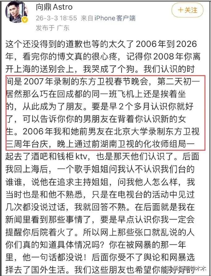 段曦和张杰都没有说具体的分手时间,在段曦的定义里,张杰出轨。而两人多年网传的分手时间线则是2007年,与谢娜认爱也是2007年。此次大乱斗,力挺段曦的向鼎发文里透露段曦和张杰至少在2006年年底尚未分手,他后悔没能早和段曦认识,不然2006年10月份就可以说张杰背着她认识其他女生的事儿。