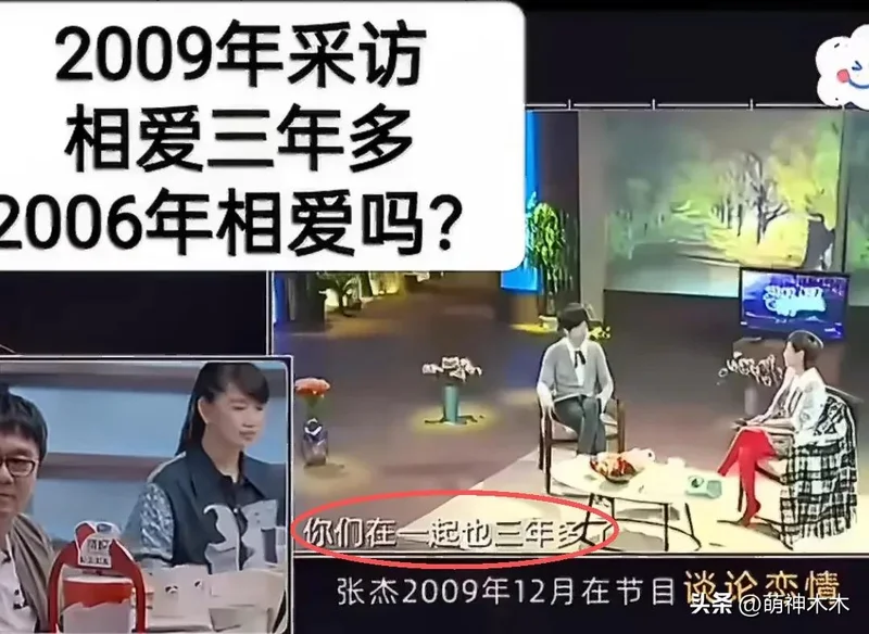 而在2009年,张杰录制李静节目时,李静直接说“你们在一起也三年多了”,又绕回了2006年。