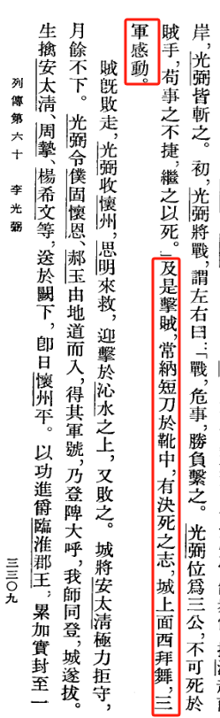 ▲李光弼在与叛贼对战时,在靴子里藏着短刀,有决一死战的志向,其忠勇之举令三军钦佩感动。(图片来源:《旧唐书》)