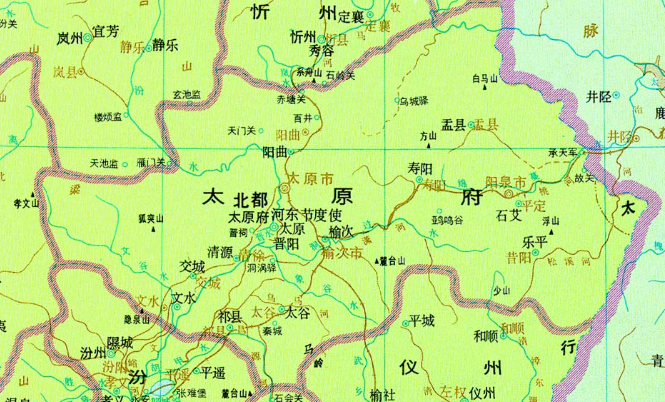 ▲唐时期太原地图。(图片来源:谭其骧《中国历史地图集》)