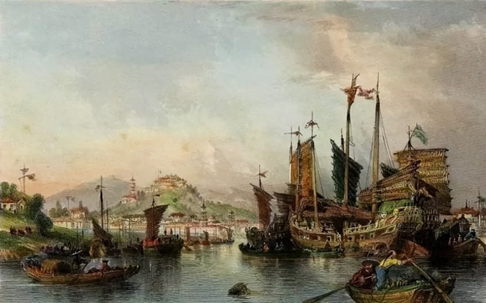 ▲1793年,英国使团画家笔下的舟山港。图源:网络