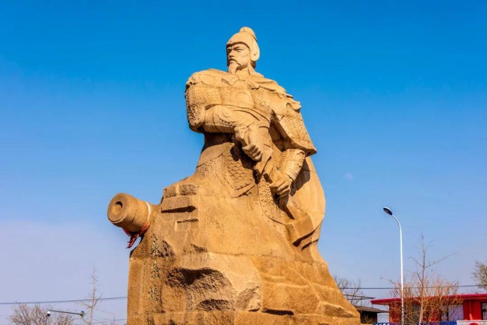 ▲辽宁葫芦岛兴城袁崇焕像,人像旁雕有一门红夷大炮。