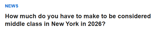 理财咨询网站SmartAsset近期发布的一项研究显示,2026年纽约市居民年收入需在54,152美元至162,456美元之间,方可被视为中产阶级。