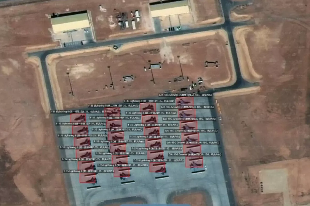 在美国和以色列动手之前,一家叫觅熵科技(MizarVision)的中国公司就已经在微博上公开了美军的部署动态。2 月 27 日,攻击发动前一天,觅熵释出了一系列高解析度卫星照片:11 架 F-22 猛禽战斗机停在以色列南部的 Ovda 空军基地跑道上;约旦的 Muwaffaq Salti 空军基地拍到 18 架 F-35 闪电 II 和 6 架 EA-18G 咆哮者电战机;沙乌地阿拉伯的 Prince Sultan 空军基地停了 16 架 KC-135 空中加油机和 6 架 E-3 哨兵预警机;同一天,福特号航空母舰被拍到正从克里特岛的苏达湾海军基地驶出。