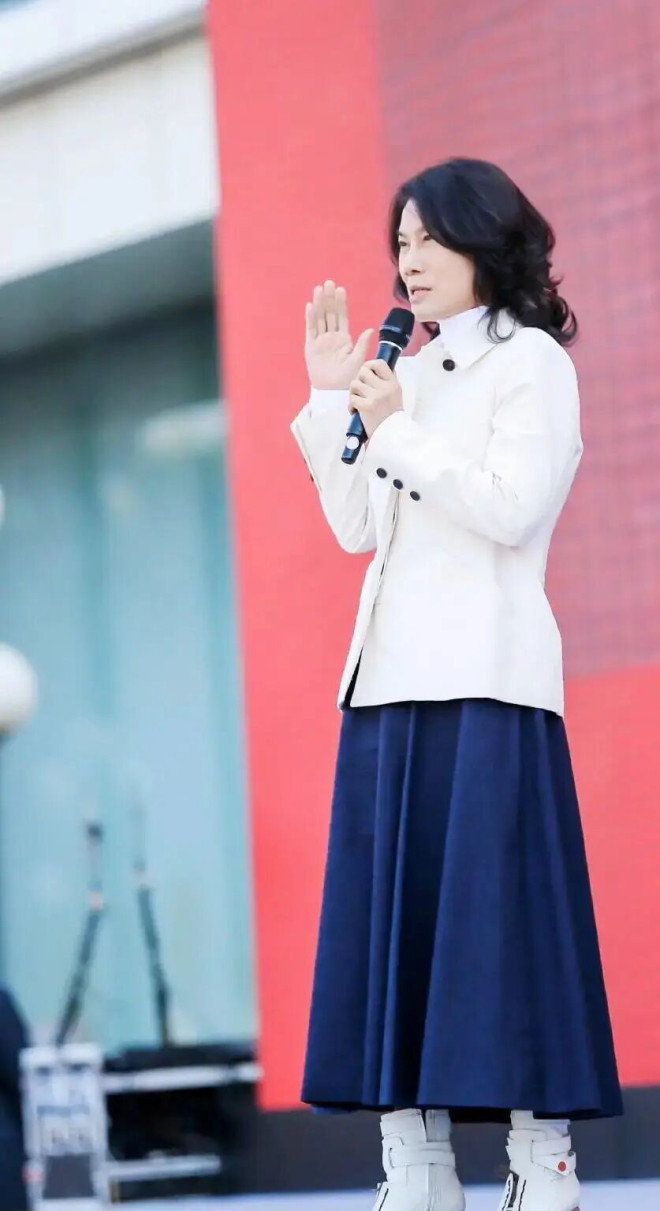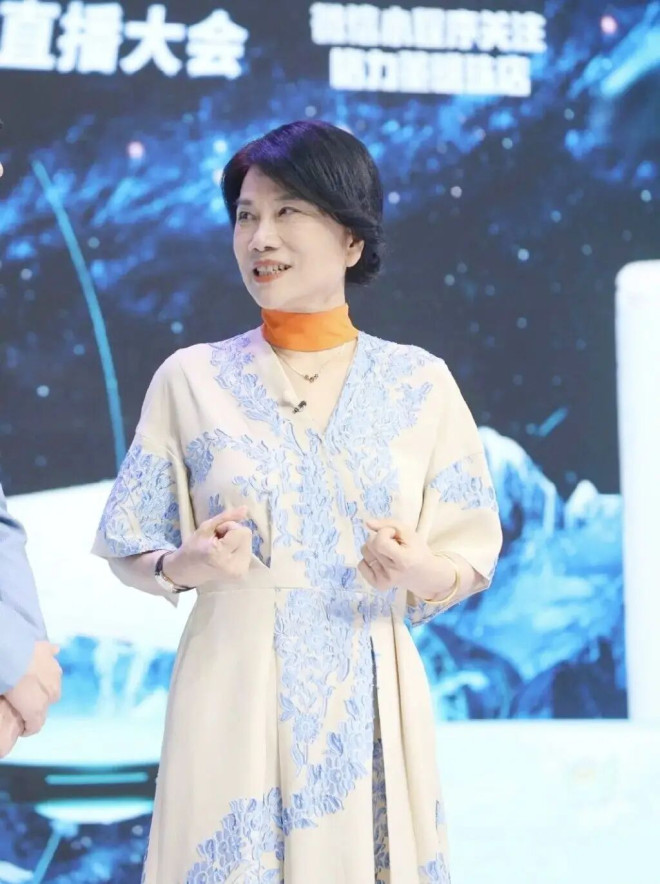 这身造型将唐服的大气与现代时尚的简约完美融合,展现了董明珠对美的独特理解和追求。