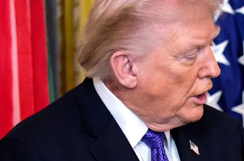 当地时间3月2日,在出席一次颁奖典礼时,特朗普被发现其颈部右侧、衣领线正上方有一块明显的红色斑点状皮疹,引起了关注。