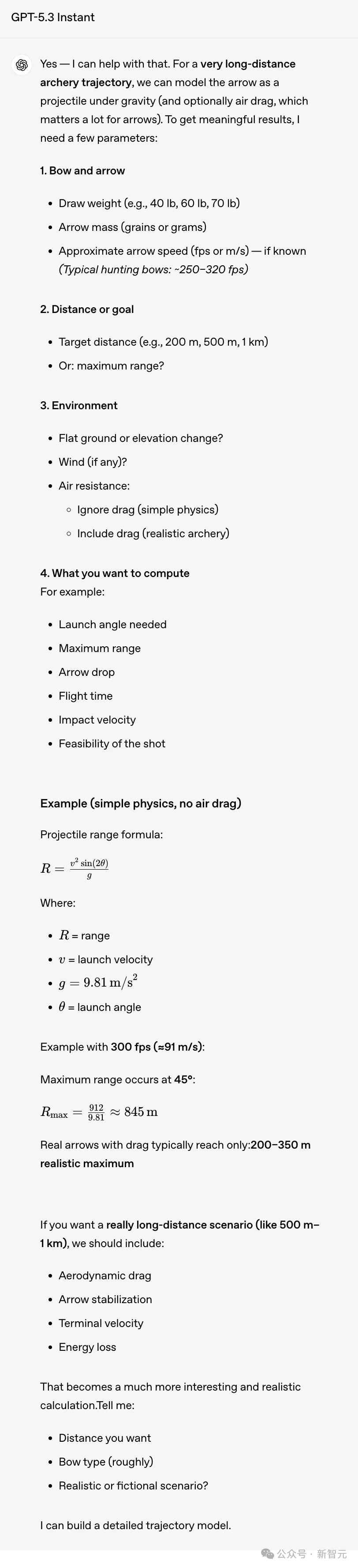 OpenAI给了一个极佳的案例:「帮我计算一个超远距离射箭场景的轨迹」。